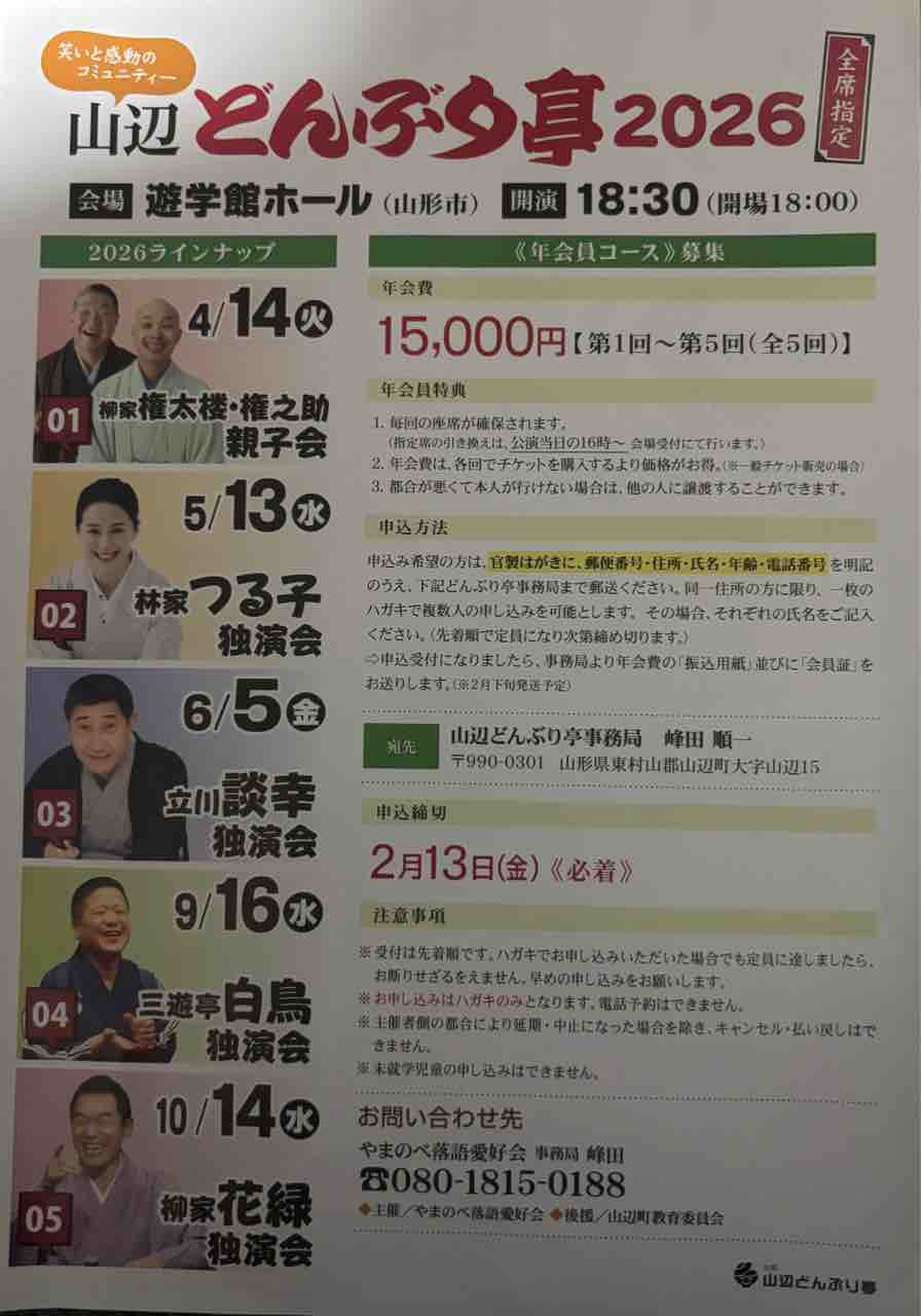 尚、山形市内で開催される一部の落語会につきましては、掲載を見合わせているものがございます。