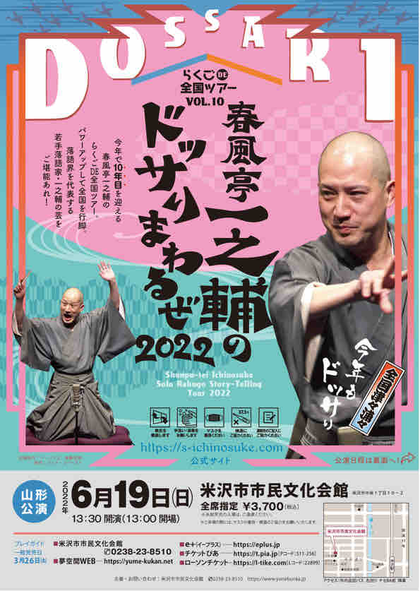 2022年03月13日 【落語会情報】春風亭一之輔のドッサリまわるぜ2022山形公演 一之輔さんのドッサリまわるぜ山形での公演は初めてです!日時:2022年6月19日(日)場所:米沢市市民文化会館開場13:00、開演13:30全席指定:3,700円チケット発売日:2022年3月26(土)10:00 「落語会情報」カテゴリの最新記事