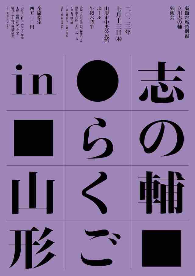 志の輔師匠が今年も山形にやってきます!会場は中央公民館。約600席のプレミアチケット、販売開始は6/18 10:00より!