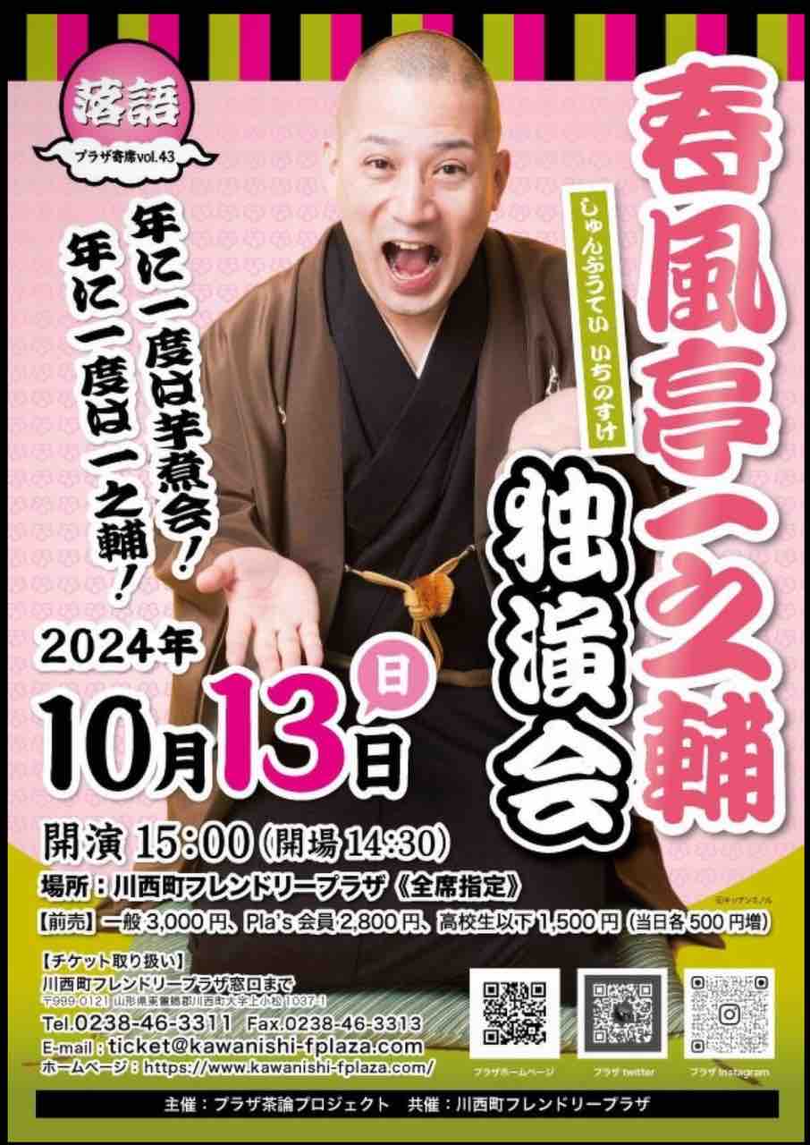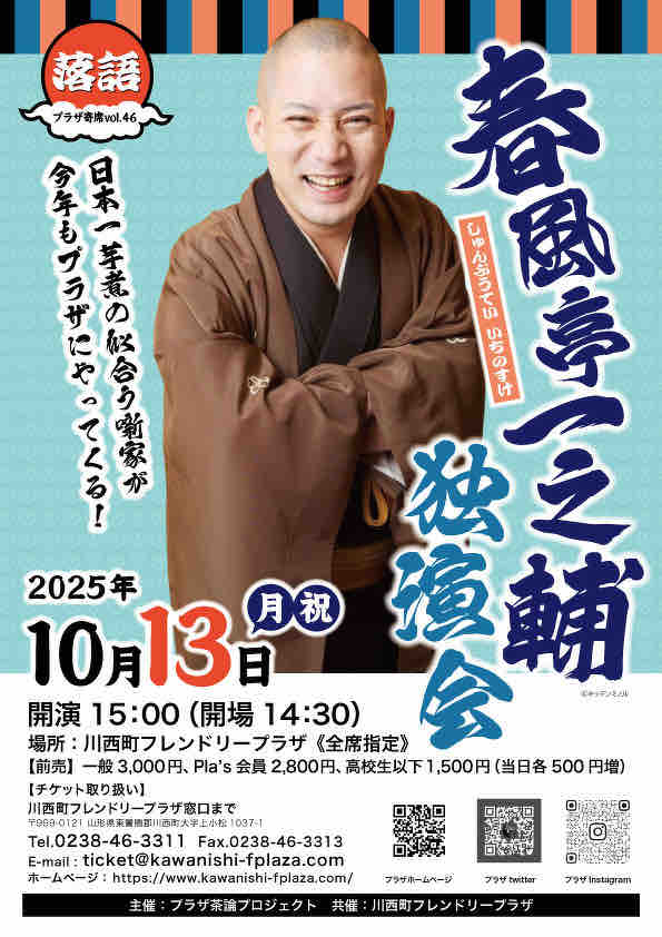 秋の川西町プラザ寄席は一之輔さんです!