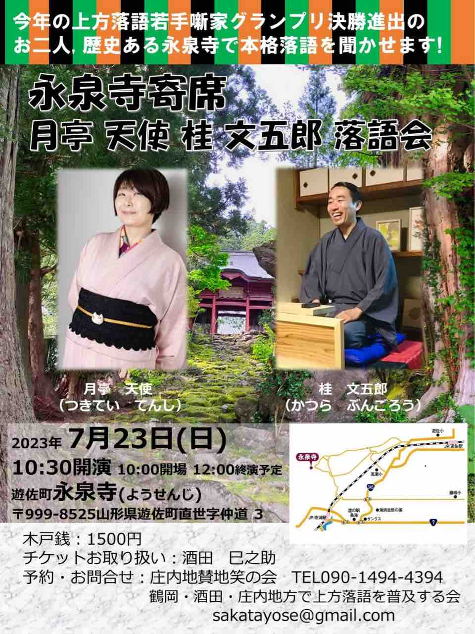 【落語会情報】酒田・鶴岡寄席(月亭天使・露の棗)
