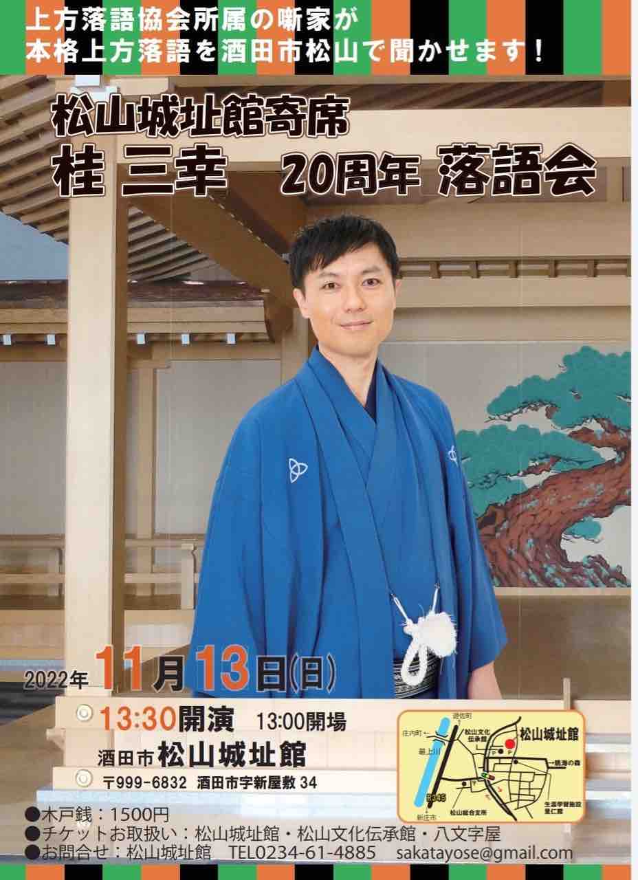 【落語会情報】松山城址館寄席 桂三幸20周年落語会