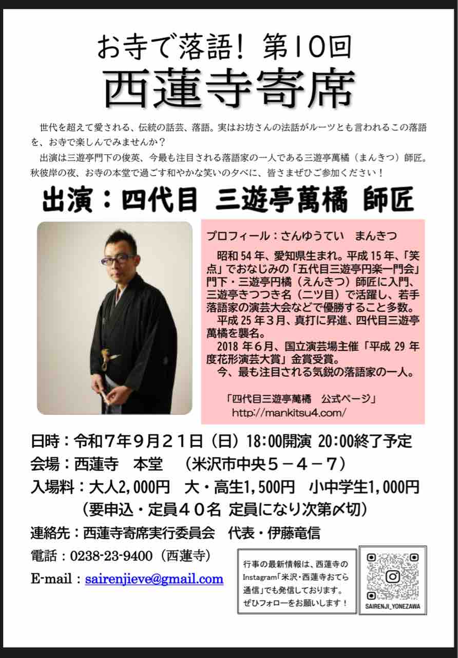 連絡先:西蓮寺寄席実行委員会 代表・伊藤竜信